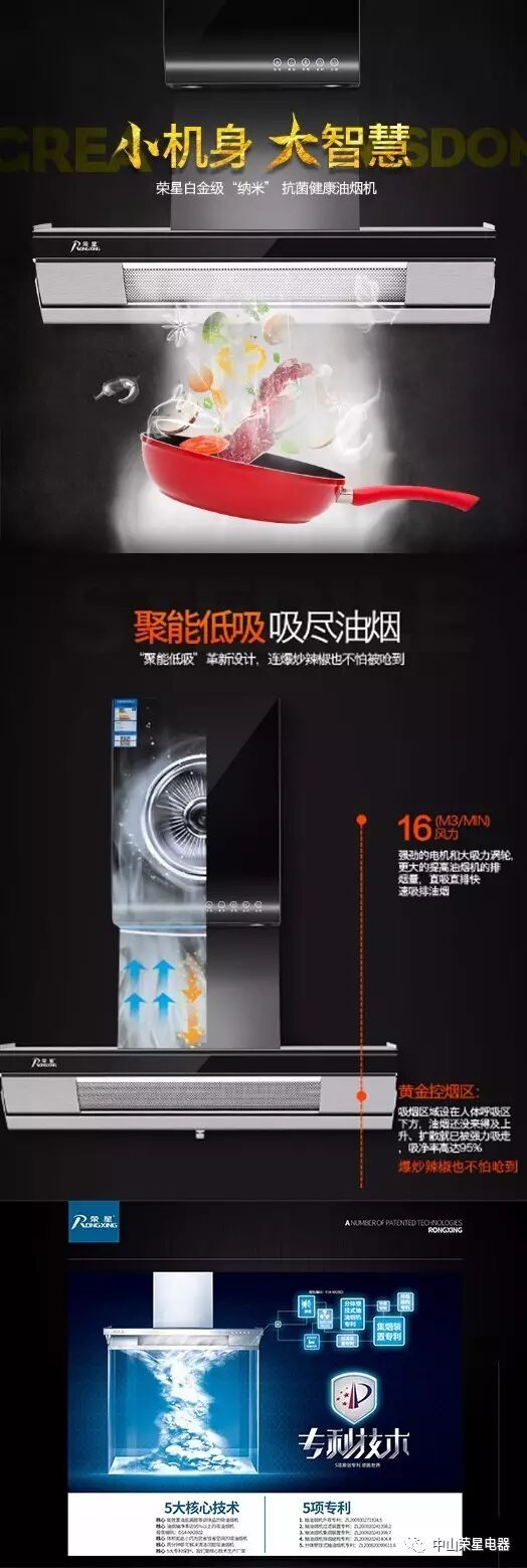 廚衛行業的達康書記 ——榮星廚衛 自2016年下半年以來,榮星廚衛在打假方面雷厲風行。榮星廚衛董事長樊國強:“我們榮星廚衛盡心盡力淨化廚衛市場(chǎng),對産(chǎn)品負責,對消費者負責。” “钛銀納(nà)米”Y398G吸油煙機(jī) 榮星以消費者的利益爲出發點,新研發出的“钛銀納(nà)米”Y398G吸油煙機(jī)開創國内廚衛行業先河,“钛銀納米”材料具有很強的抗菌殺菌能力,産品的風網、油槽、油盒、面闆、隔油網、風輪等配件均採用特制材質,清洗拆洗更方便快捷。 精益求精,榮星爲消費(fèi)者營造一個(gè)無油煙、無細菌、無異味的健康家居環境。