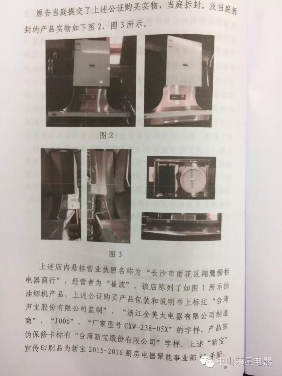 一、被告長(zhǎng)沙市雨花區翔鷹櫥櫃電器商行(經營者崔波)立即停止銷售、許諾銷售侵害原告中山市榮星電器燃具有限公司ZL200930271924.5外觀設計專利權的抽油煙機産(chǎn)品;