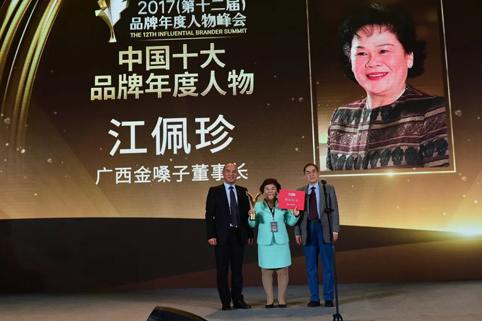 ▲▲廣(guǎng)西金嗓子董事長(zhǎng)江佩珍被授予“中國十大品牌年度人物”▲▲
