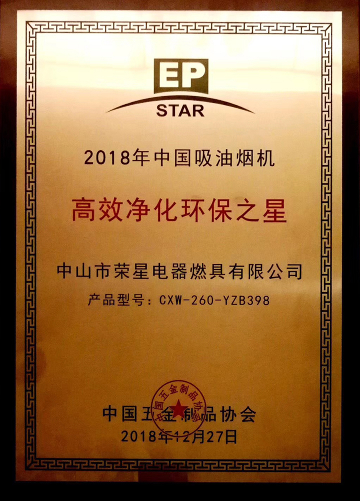 2018中國(guó)吸油煙機高效淨化環(huán)保之星