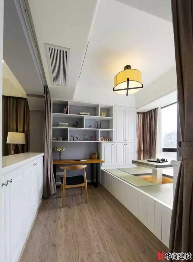 第七種:陽台變客房。陽台可以與室内打通借用空間,做成書房兼客房區域,充分利用陽台。平時就是休閑功能,如果家裏人多,随時可以變爲客房功能。