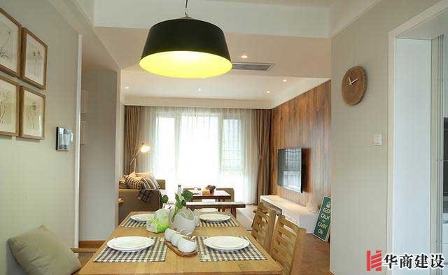 從餐廳看過去客廳空間,除瞭中央空調需要吊頂,其他都是透著一股淡淡的低調的輕奢範。