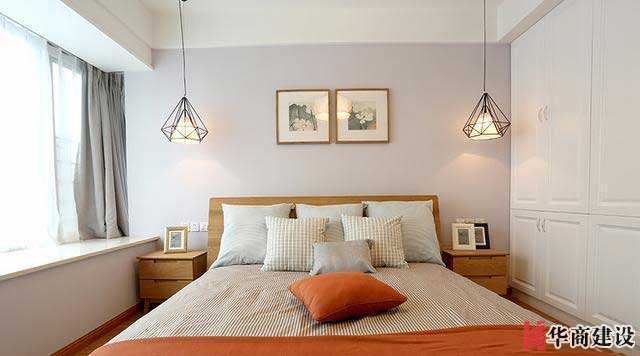 這個就是主卧的整體效果瞭,擺上一張床,兩個精緻小巧的床頭櫃,一整排的衣櫃不怕衣物沒地方儲存,兩側一樣一個吊燈垂下,頗有北歐風格的那種典型的氣質和時尚。你們覺得自己花瞭設計費的裝修能給同小區的人借鑒嗎?