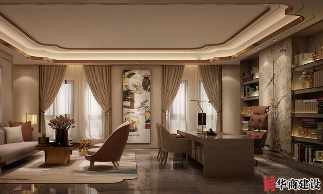 這是董事長辦公室設計圖,整體的設計風格主要採用的是現代歐式風格,給人一種非常簡約、舒适的感覺,在這樣的地方工作辦公有一種家的溫馨感,通過辦公室中的擺件和整體的設計風格也可以看出來老闆是一個非常有品位懂得生活的人。