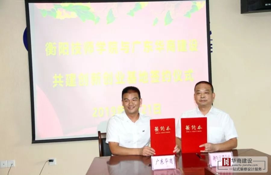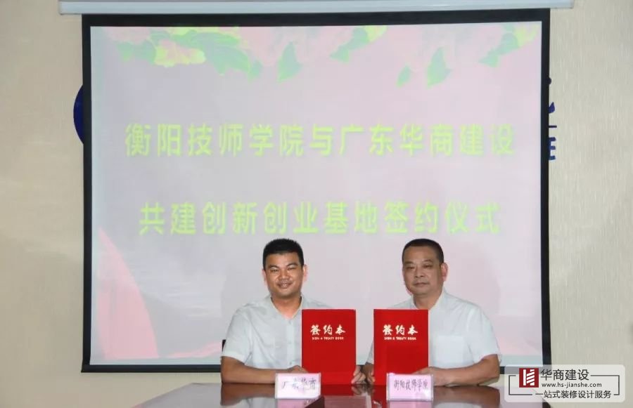 2019年8月21日,廣東華商建設與衡陽技師學院共建創(chuàng)業孵化基地簽約儀式,在衡陽技師學院隆重舉行,華商建設董事長(zhǎng)林紅星帶領公司相關人員共同出席簽約儀式。